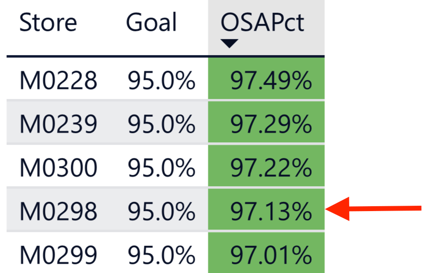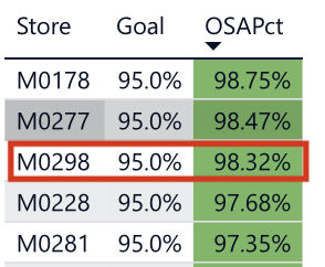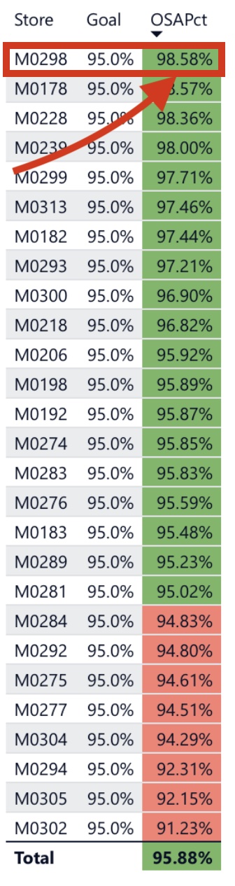 With one week to go, thanks to this past week’s performance, we have cracked the top 3 for OSA in the region over the full quarter. We overtook store 300! We may even have a shot at number two in the region! Our 98.01% OSA in Period 10 is the TOP in the region!