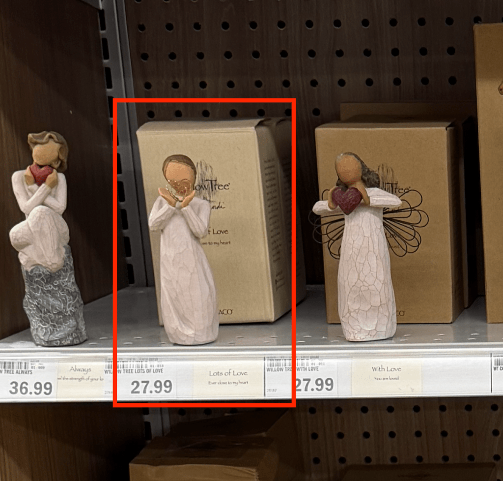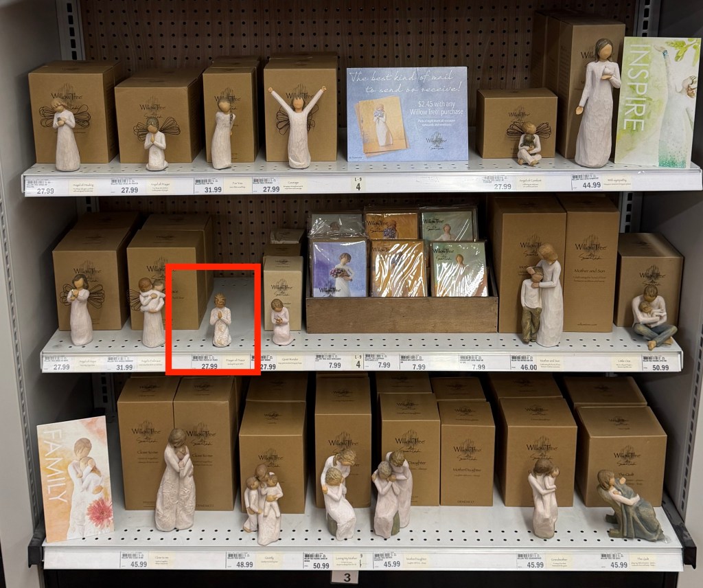 For the “Prayer of Peace” figurine, I have been removing the figure from the box and not writing display on it, but just placing it as a display, taking the photo, and then putting it back in the box. I don’t want there to be no product for sale with the display figurine all that is left. So please do this again unless we have more than one box.