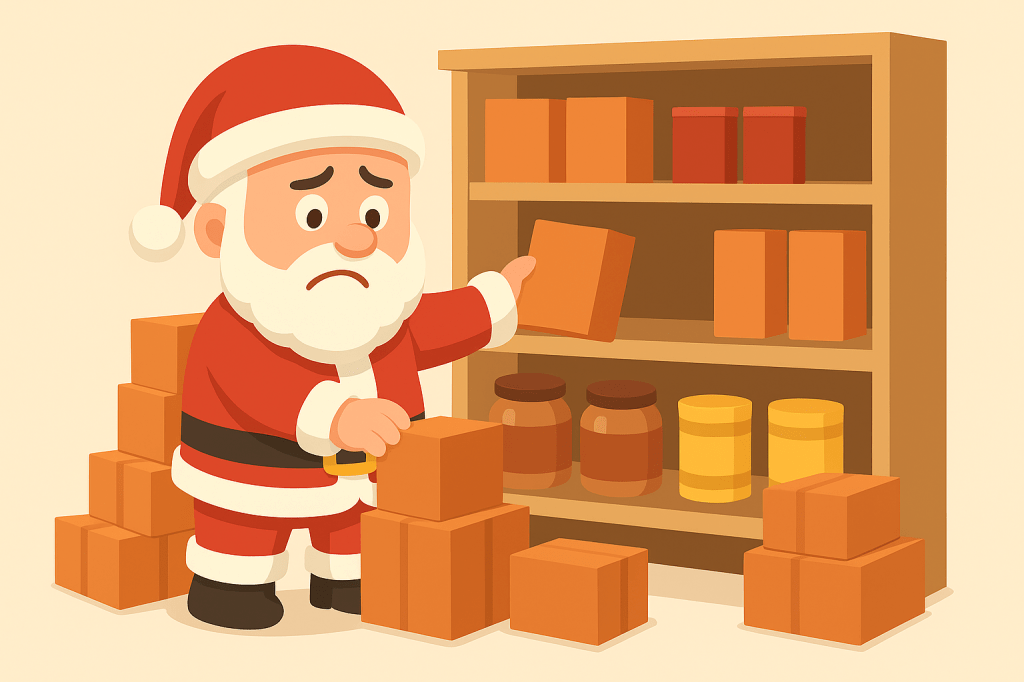 Palletize any holiday items and inform whoever is available (Ryan or Rebecca) that they arrived. They approved them, so now we just need to know where to put them.
