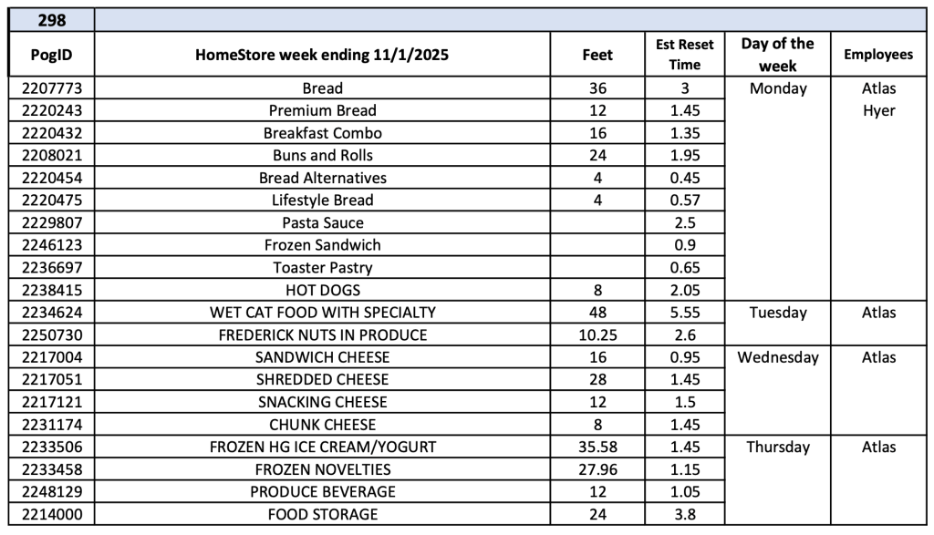 Homestore Reset Schedule (Week Ending 11/1/2025)