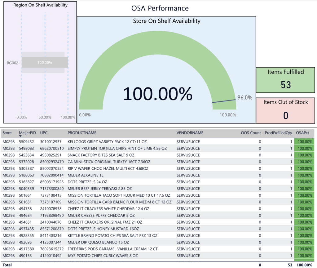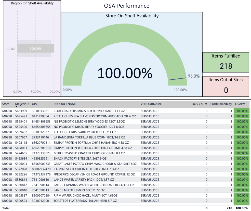 Our OSA for the quarter continues to climb, as we have not had a single out of stock since last Saturday!