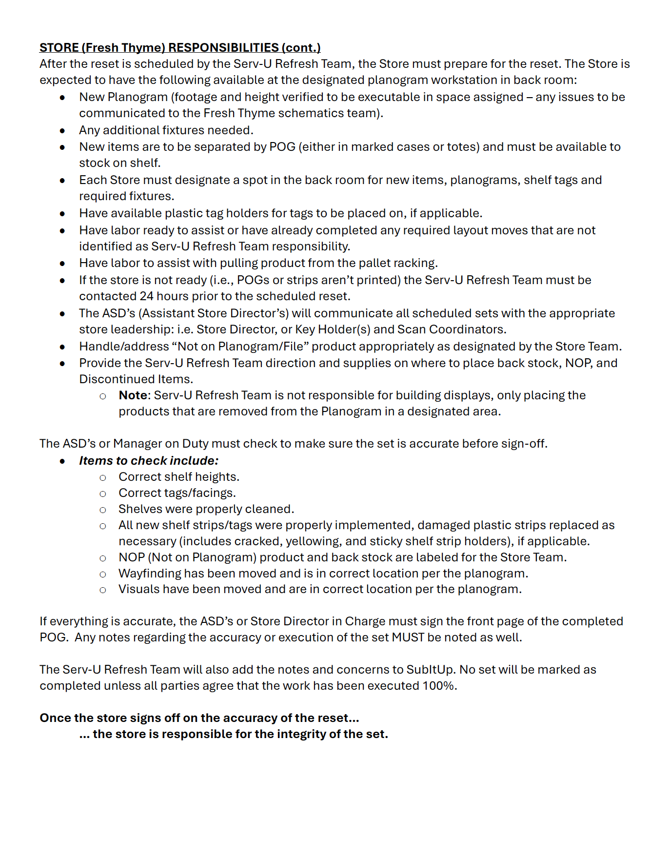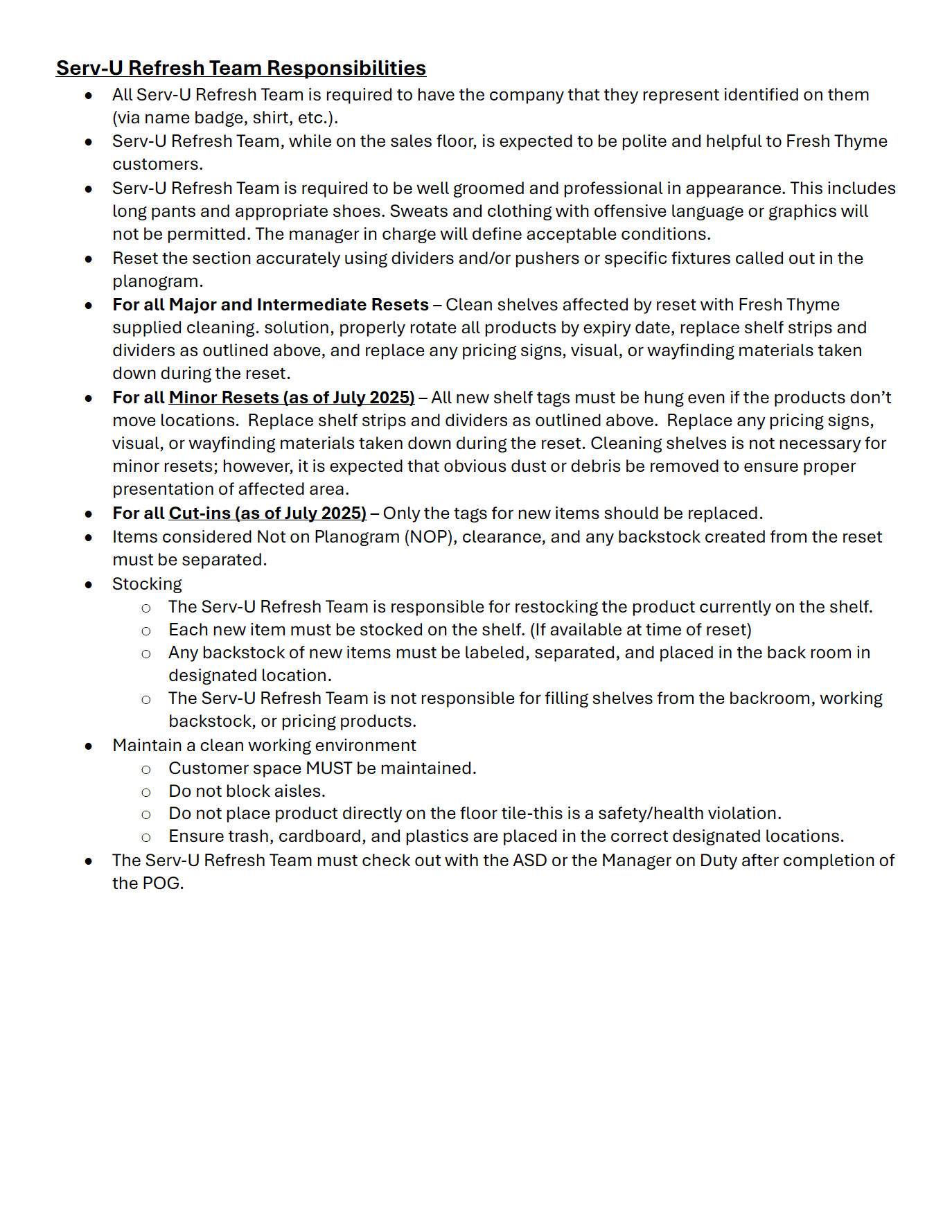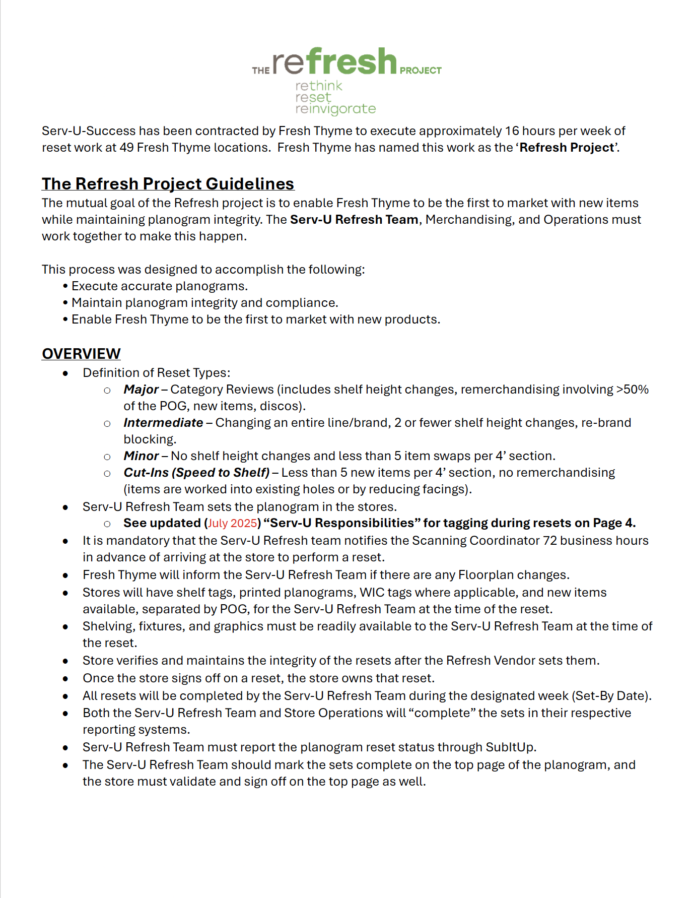 Fresh Thyme Refresh Project Guidelines
